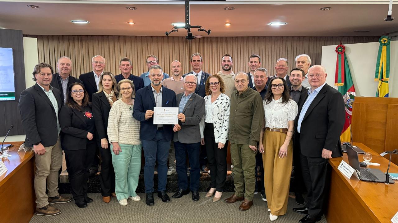 Os 35 anos do Centro Empresarial de Flores da Cunha foram celebrados com uma homenagem na Câmara de Vereadores, na noite desta segunda-feira (10).. Na presença de diretores e ex-presidentes da entidade, a Moção de Congratulações proposta pelo vereador Luiz André de Oliveira (Republicanos) foi aprovada com unanimidade.