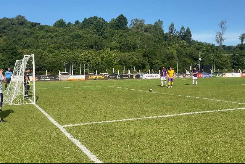 Um dos gols, de pênalti, no confronto entre Florentina e Tabajara