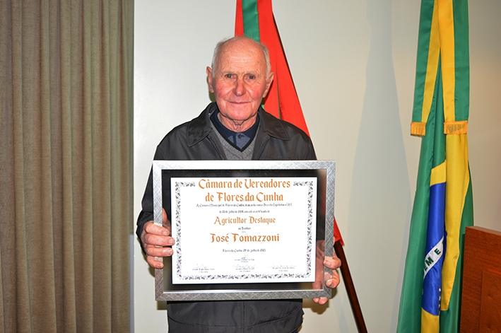Nascido na Linha 60, em Flores da Cunha, José Tomazzoni é proprietário da Uvas Tomazzoni, fixada na mesma localidade. Com 18 hectares de área plantada, a Tomazzoni é uma empresa de agricultura familiar, que produz e comercializa hortaliças e frutas. Anualmente, chega a produzir 150 mil quilos de uva, 320 mil quilos de tomate e 30 mil quilos de pimentão, além de 1 milhão de litros de vinho. Há 35 anos tem como um de seus principais clientes a rede Walmart, para os quais comercializa a maior parte da sua produção.