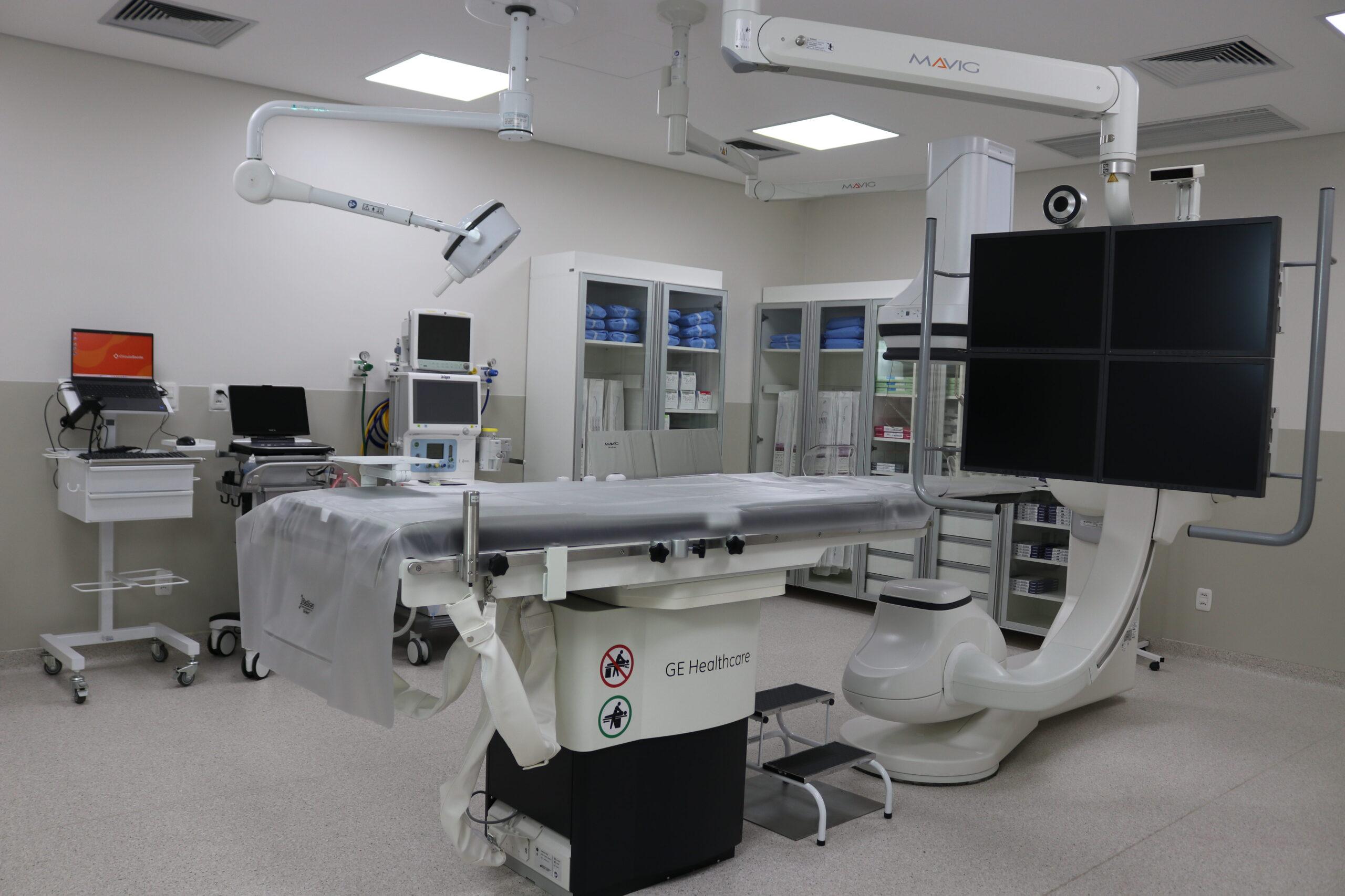 Entre os diferenciais está o sistema GE Alia IGS com tecnologia AutoRight, que oferece imagens em altíssima definição com menor exposição à radiação e permite reconstruções 3D para intervenções minimamente invasivas, como cateterismo, angioplastia e TAVI.