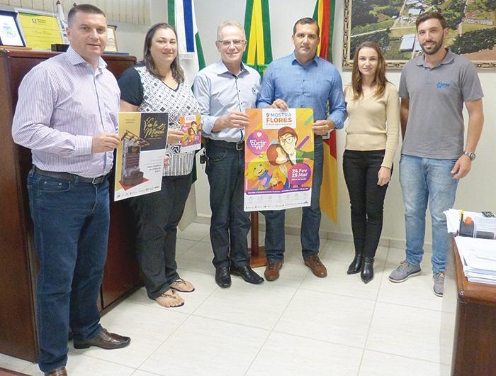 Na semana passada, o prefeito de Nova Pádua, Ronaldo Boniatti; e os secretários de Educação, Mônica Pan; e da Agricultura, Samoel Smiderle, receberam a comitiva da 9ª Mostra Flores e 6ª Feira Agroindustrial. Os realizadores do evento, o diretor da Terra do Galo, Ricardo ‘Bacana’ Vignatti; o presidente do Sindicato dos Trabalhadores Rurais, Olir Schiavenin; e a secretária de Agricultura de Flores da Cunha, Stella Pradella, entregaram o convite oficial e o cartaz da feira que ocorrerá de 24 de fevereiro a 25 de março, no Parque da Vindima, em Flores da Cunha. Saiba mais em mostraflores.com.br.