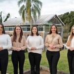 Candidatas, da esquerda para a direita: Tainara Molon, Maísa Molon, Karina Calgaro, Jhenifer Dullius Turra e Fernanda Zini (Foto: Luizinho Bebber/ Divulgação Fecouva)