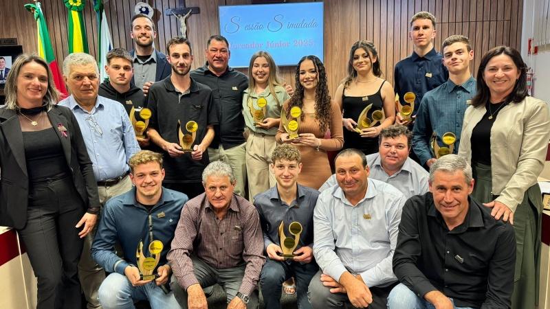 Infraestrutura, educação, esporte, empreendedorismo e meio ambiente foram os principais temas abordados pelos jovens durante a 17ª Sessão Simulada Vereador Júnior, realizada na Câmara de Vereadores na última segunda-feira (20). Nove estudantes do município ocuparam as cadeiras do plenário para apresentar propostas que dialogam com as demandas da comunidade e apontam possibilidades para o futuro do Pequeno Paraíso Italiano.
