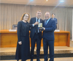 — Receber esta honraria me enche de orgulho. Esta medalha Mérito Florense é um verdadeiro símbolo do pertencimento. Foi aqui que dei meus primeiros passos; aqui que aprendi a valorizar o trabalho, a amizade e a fé. Tudo que construí até hoje, de alguma forma, tem a marca de Flores da Cunha. Esse título não é apenas uma homenagem ao que passou, mas sim um chamado para o futuro. Reafirmo aqui com vocês, no que a minha lucidez permitir, ainda quero fazer muito por Flores da Cunha. Reafirmo aqui o meu compromisso pelo desenvolvimento da nossa terra, para que Flores da Cunha siga crescendo com orgulho de sua gente. Obrigado por me fazerem melhor — agradeceu Neco Argenta, ao final do seu discurso, para as palmas do plenário lotado.