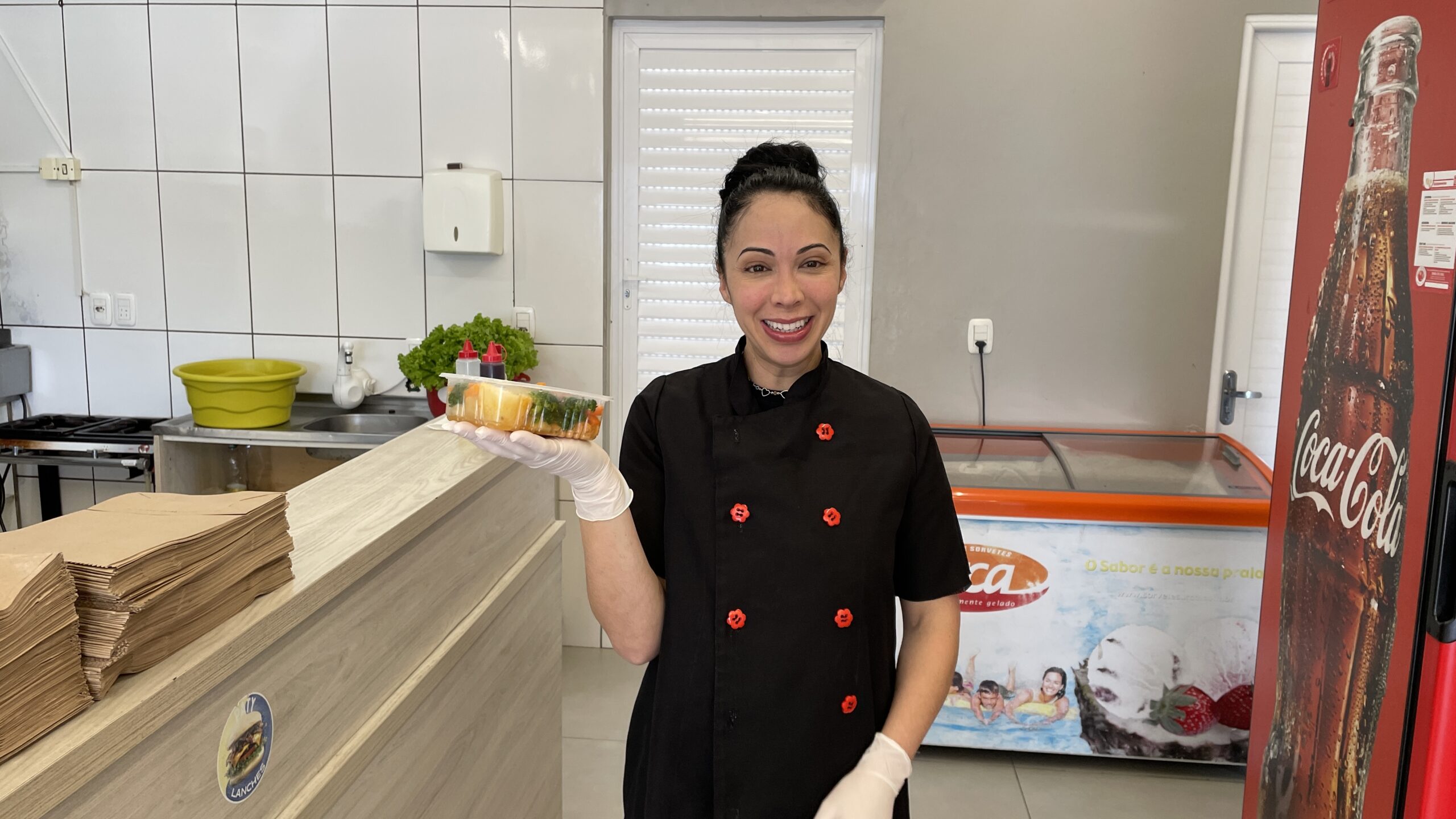 — Na parte da produção, meu marido (Roberto) é quem faz as compras, e eu fico responsável por cozinhar. Preparo as marmitas sozinha. Eu monto o cardápio de 15 em 15 dias durante o inverno e, no verão, organizo um novo cardápio semanalmente, para acompanhar melhor a rotina dos clientes.
