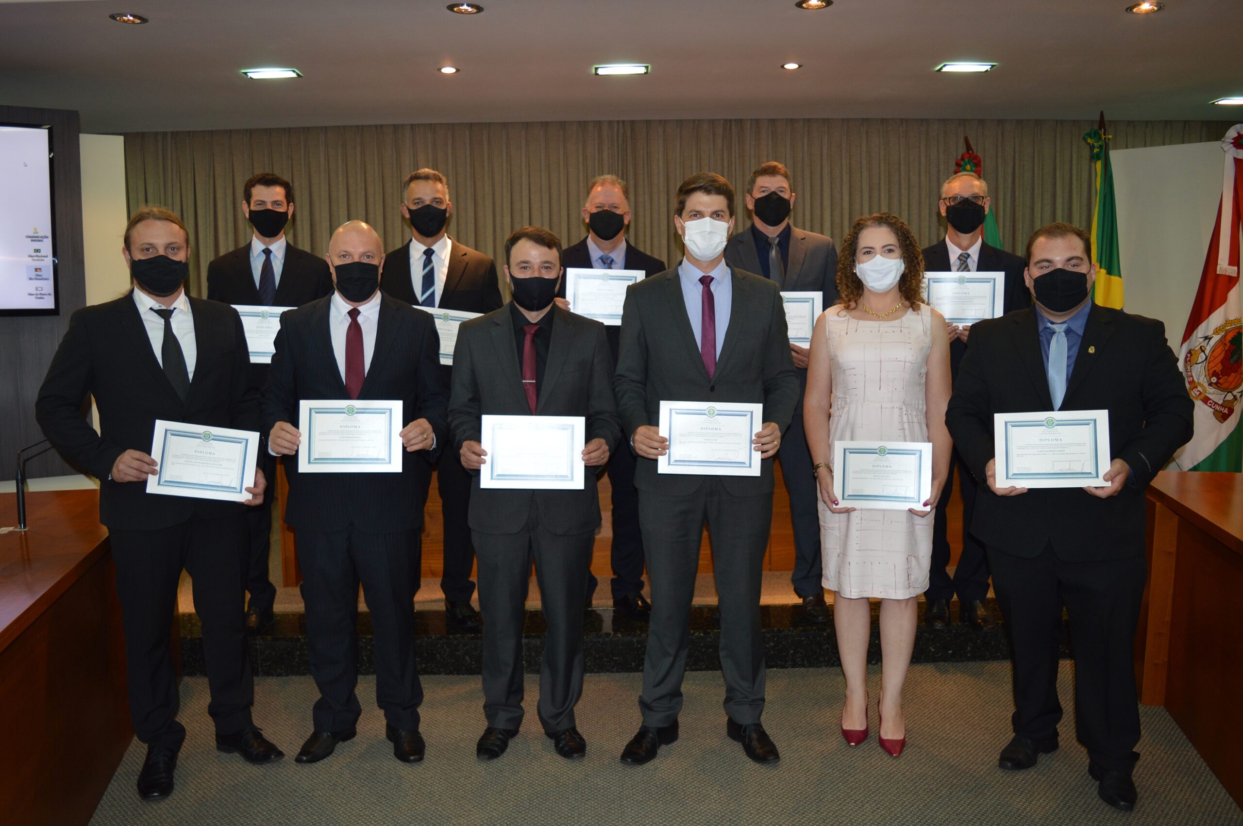 O prefeito eleito de Flores da Cunha, César Ulian (Progressistas), o vice-prefeito Marcio Rech (Republicanos) e os vereadores para o mandato 2021-2024 foram diplomados na tarde desta quinta-feira, dia 17 de dezembro, na Câmara de Vereadores. A solenidade foi comandada pelo juiz da Comarca de Flores da Cunha, Enzo Carlo Di Gesu, e acompanhada pelo promotor Stéfano Lobato Kaltbach, e pelo chefe do cartório da 68ª Zona Eleitoral, Gelson Molardi.