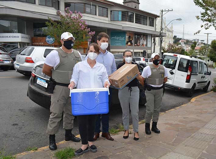 As primeiras 190 doses da vacina CoronaVac chegaram na tarde desta terça-feira, dia 19, por volta das 13h15min, ao Centro de Saúde Irmã Benedita Zorzi em Flores da Cunha. A chegada foi escoltada pela Brigada Militar e contou com a presença do prefeito César Ulian, da secretária de Saúde Jane Paula Baggio e da técnica de enfermagem Sonia Galiotto, que carregava as doses. O ato da primeira vacinação está previsto para as 17h, quando duas profissionais da saúde que atuam na linha de frente do combate à pandemia receberão as primeiras doses.
