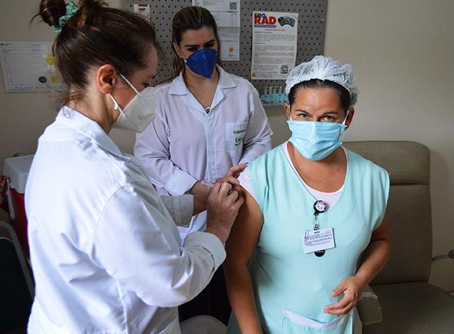 Iniciou na manhã desta quarta-feira, dia 20, a vacinação contra a Covid-19 dos profissionais da área da saúde em Flores da Cunha. As 190 doses da CoronaVac, desenvolvida em parceria entre o laboratório Sinovac e o Instituto Butantan, são destinadas aos profissionais que atuam na linha de frente do atendimento à Covid-19 no município.