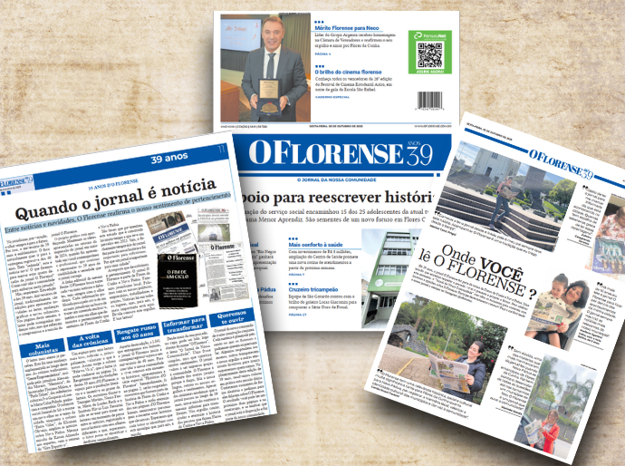 O jornal da nossa comunidade é uma construção conjunta. Cada matéria é planejada pensando no que os florenses e paduenses querem ou precisam ler. Algumas respondem aos anseios, outras transparecem o nosso orgulho e outras eternizam histórias para nunca esquecermos quem somos. No planejamento da edição de 39 anos, a 1.841 de nossa história, resolvemos colocar em prática esta missão diária. Contatamos assinantes de forma aleatória e pedimos para eles falarem sobre O Florense. O resultado foram páginas de você pode ler nas próximas duas páginas e na contracapa, e se lembrar que o jornal está à disposição e faz parte da nossa comunidade