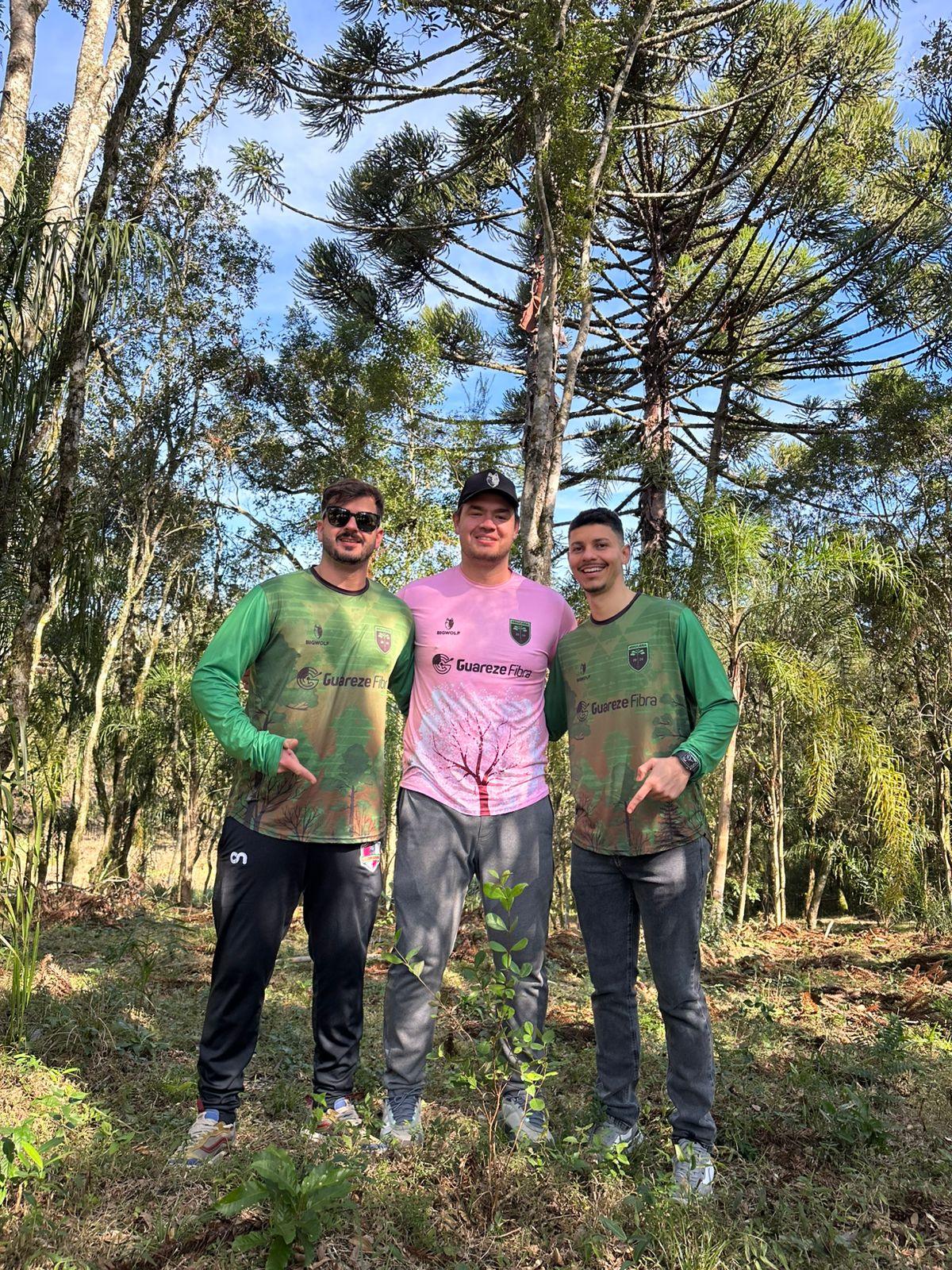 Edinei Ribeiro, Douglas Tomazi e Erich Batista plantaram as árvores em referência aos gols na estreia do torneio (Foto: reprodução redes sociais)