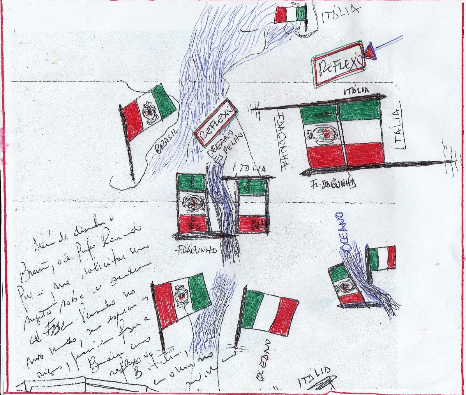 Logo em seguida, o prefeito Raymundo Paviani, me solicitou que apresentasse uma sugestão para a bandeira. Não houve concurso e em 30 de abril de 1975, pela Lei Municipal 689, foi instituída a bandeira, seguindo a minha sugestão. Me ocorre que, em 20 de maio de 1975, iria ser inaugurado o Monumento do Centenário da Colonização Italiana em Nova Milano, e as prefeituras da região Colonial Italiana teriam um local para desfraldar as suas bandeiras.