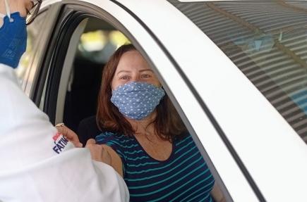 A imunização acontecerá no modelo drive-thru no estacionamento atrás da prefeiturar r