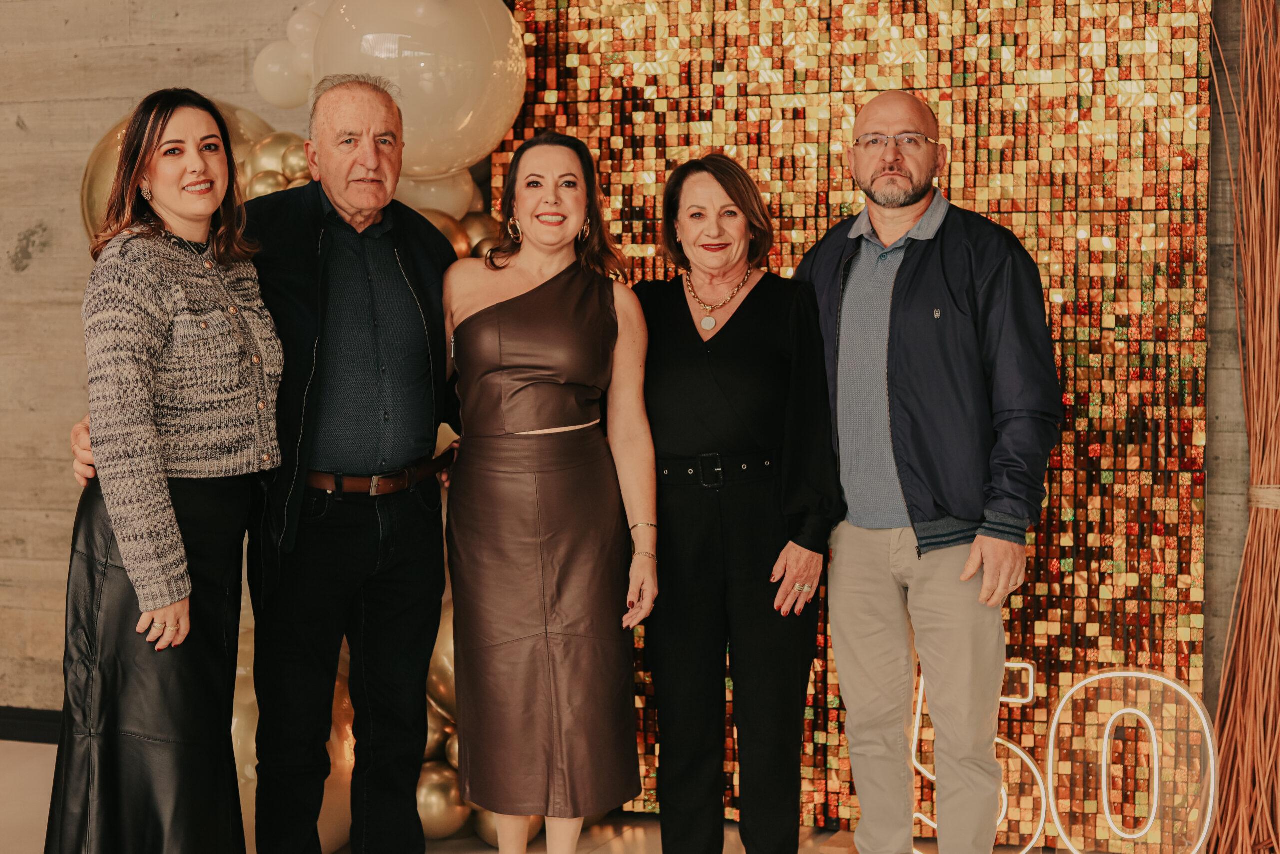 Na foto, a estrela da noite, Elisangela Cavalli, acompanhada pelo pai Pedro Cavalli, a mãe Ângela Sgarioni Cavalli e os irmãos Sara Cavalli e Alexandre Cavalli.